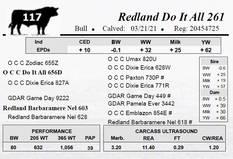 All bulls selling for $2,500 or more will be covered 50% by Redland Angus if they are injured during their first breeding season.