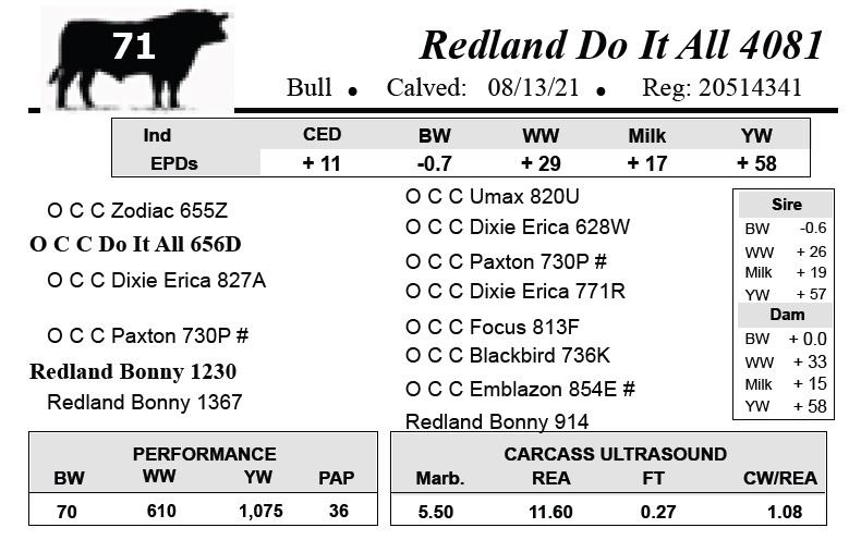 All bulls selling for $2,500 or more will be covered 50% by Redland Angus if they are injured during their first breeding season.