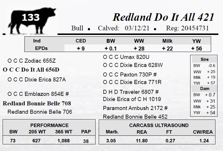 All bulls selling for $2,500 or more will be covered 50% by Redland Angus if they are injured during their first breeding season.