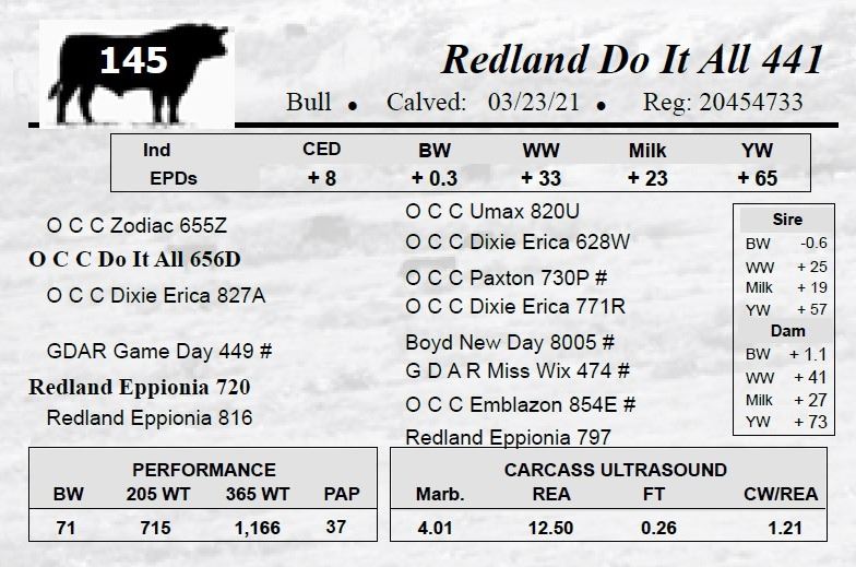 All bulls selling for $2,500 or more will be covered 50% by Redland Angus if they are injured during their first breeding season.