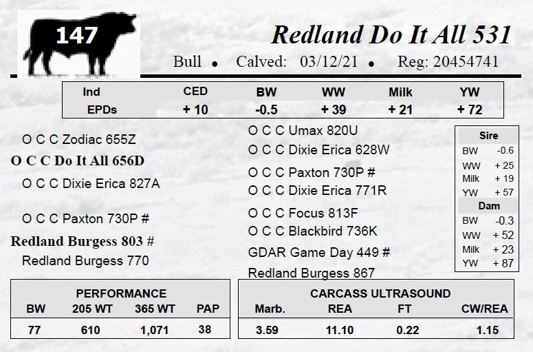 All bulls selling for $2,500 or more will be covered 50% by Redland Angus if they are injured during their first breeding season.