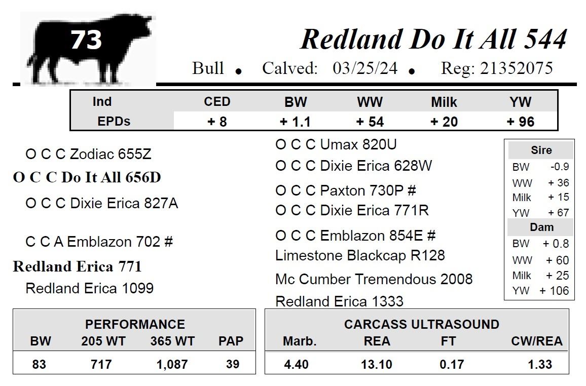All bulls selling for $2,500 or more will be covered 50% by Redland Angus if they are injured during their first breeding season.