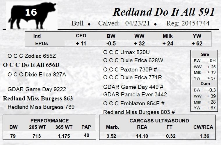 All bulls selling for $2,500 or more will be covered 50% by Redland Angus if they are injured during their first breeding season.