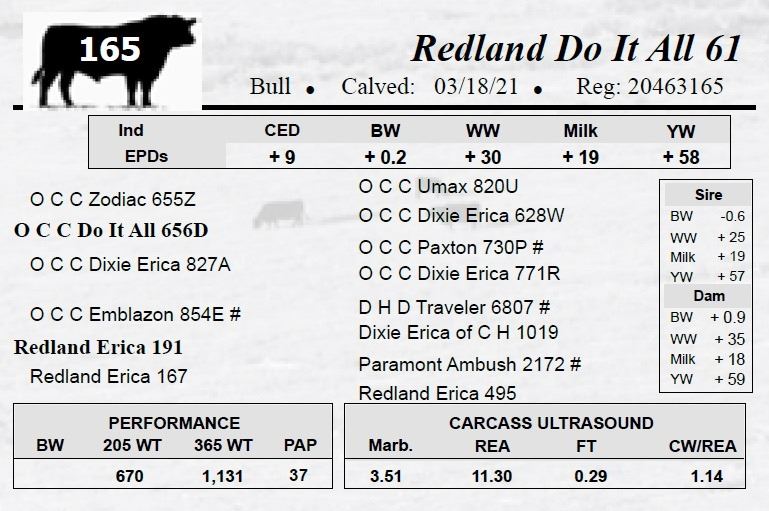 All bulls selling for $2,500 or more will be covered 50% by Redland Angus if they are injured during their first breeding season.