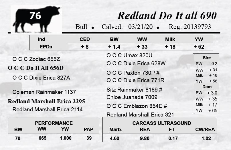 All bulls selling for $2,500 or more will be covered 50% by Redland Angus if they are injured during their first breeding season.