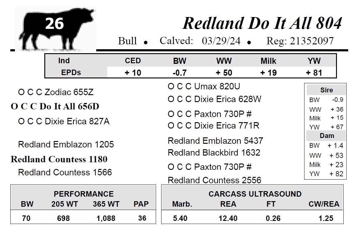 All bulls selling for $2,500 or more will be covered 50% by Redland Angus if they are injured during their first breeding season.
