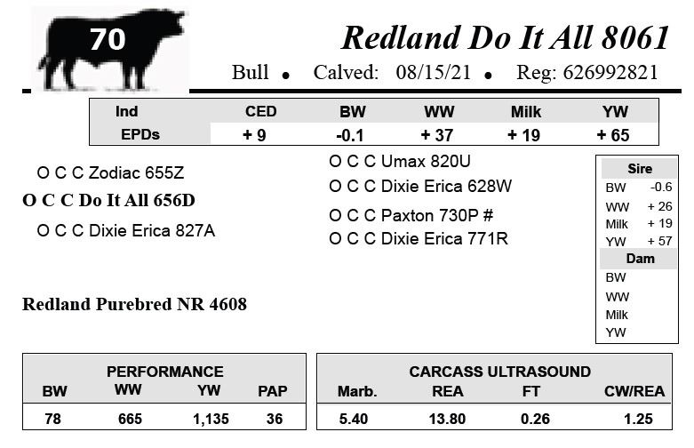 All bulls selling for $2,500 or more will be covered 50% by Redland Angus if they are injured during their first breeding season.