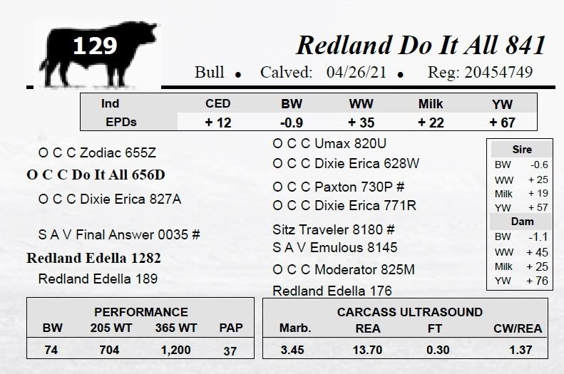 All bulls selling for $2,500 or more will be covered 50% by Redland Angus if they are injured during their first breeding season.