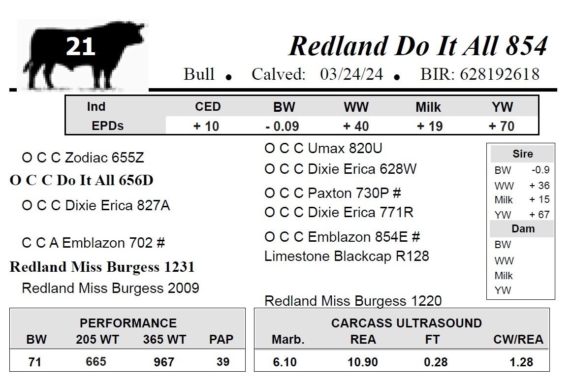All bulls selling for $2,500 or more will be covered 50% by Redland Angus if they are injured during their first breeding season.