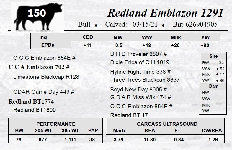All bulls selling for $2,500 or more will be covered 50% by Redland Angus if they are injured during their first breeding season.