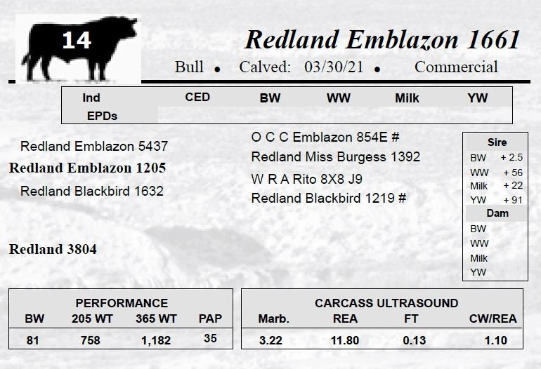 All bulls selling for $2,500 or more will be covered 50% by Redland Angus if they are injured during their first breeding season.