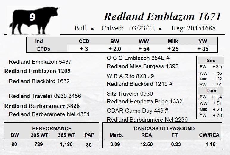 All bulls selling for $2,500 or more will be covered 50% by Redland Angus if they are injured during their first breeding season.