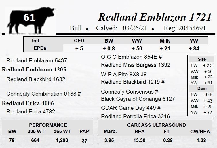 All bulls selling for $2,500 or more will be covered 50% by Redland Angus if they are injured during their first breeding season.