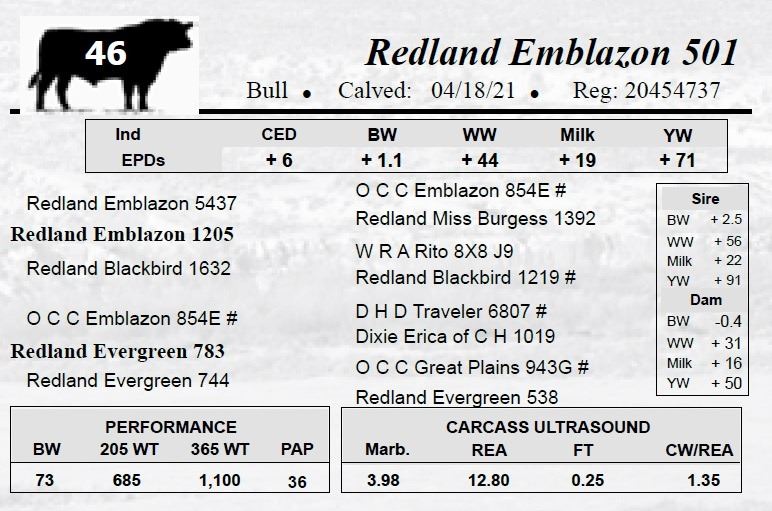 All bulls selling for $2,500 or more will be covered 50% by Redland Angus if they are injured during their first breeding season.