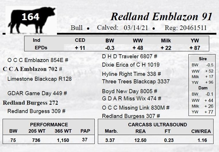 All bulls selling for $2,500 or more will be covered 50% by Redland Angus if they are injured during their first breeding season.
