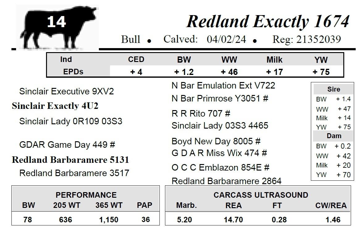 All bulls selling for $2,500 or more will be covered 50% by Redland Angus if they are injured during their first breeding season.
