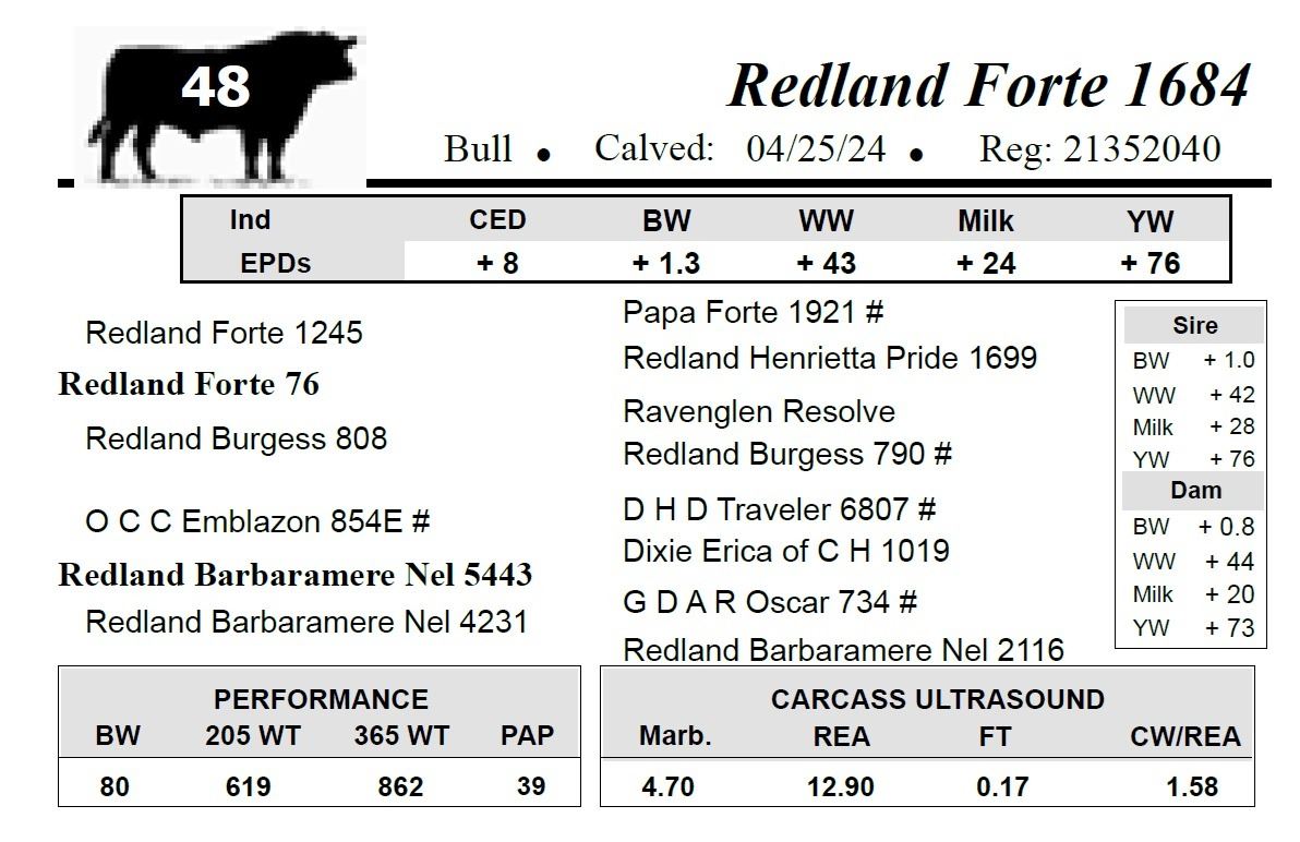 All bulls selling for $2,500 or more will be covered 50% by Redland Angus if they are injured during their first breeding season.