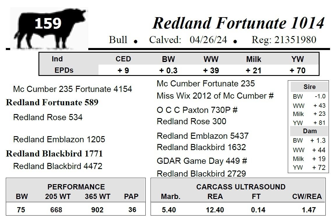 All bulls selling for $2,500 or more will be covered 50% by Redland Angus if they are injured during their first breeding season.