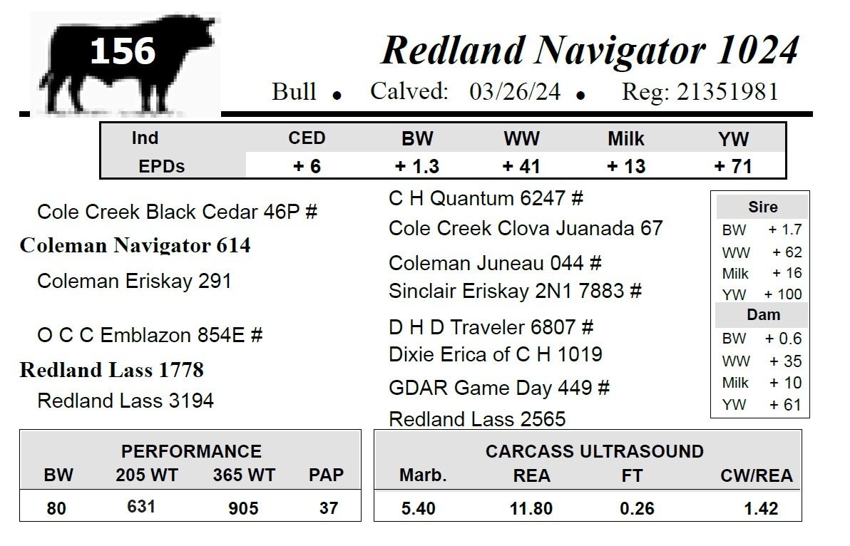 All bulls selling for $2,500 or more will be covered 50% by Redland Angus if they are injured during their first breeding season.