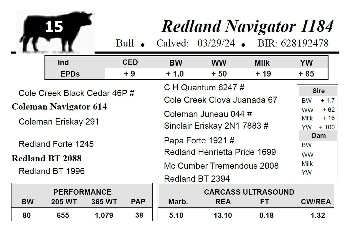 All bulls selling for $2,500 or more will be covered 50% by Redland Angus if they are injured during their first breeding season.