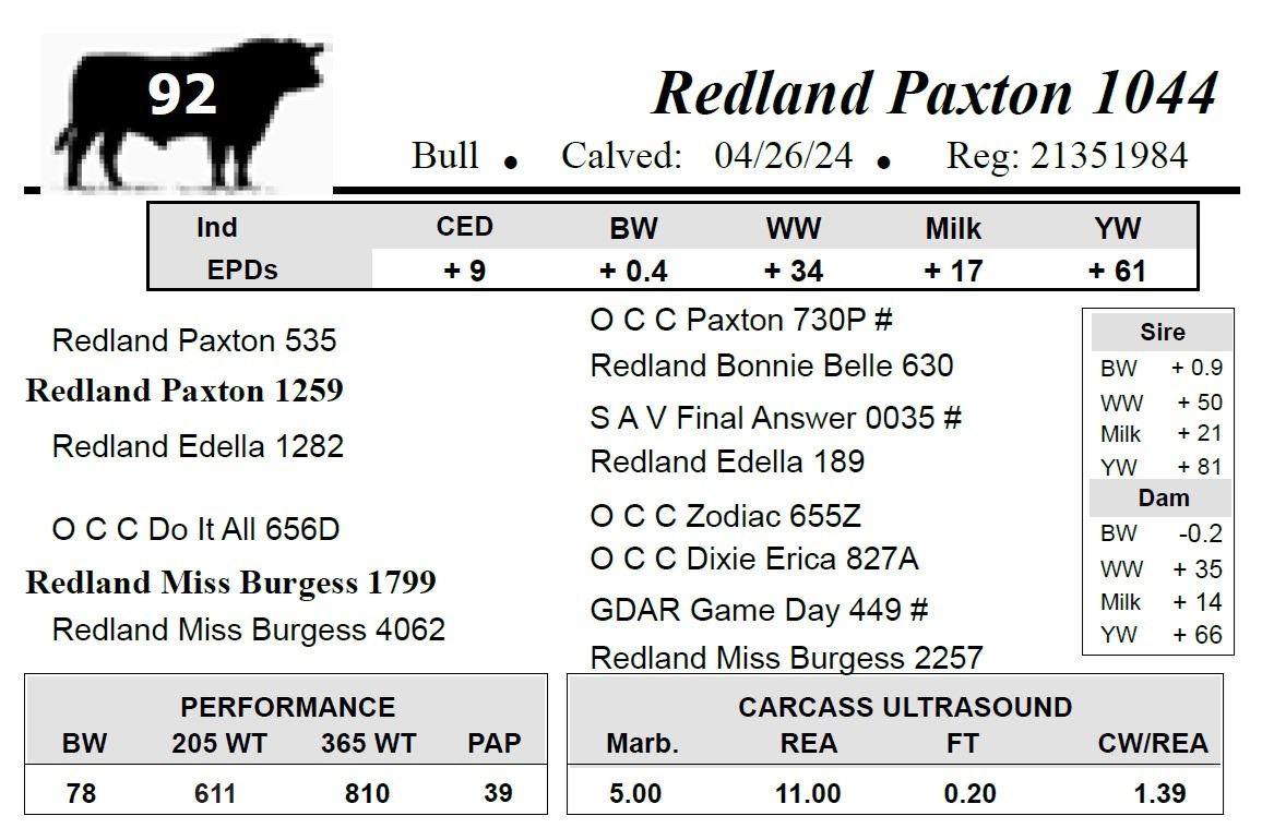 All bulls selling for $2,500 or more will be covered 50% by Redland Angus if they are injured during their first breeding season.