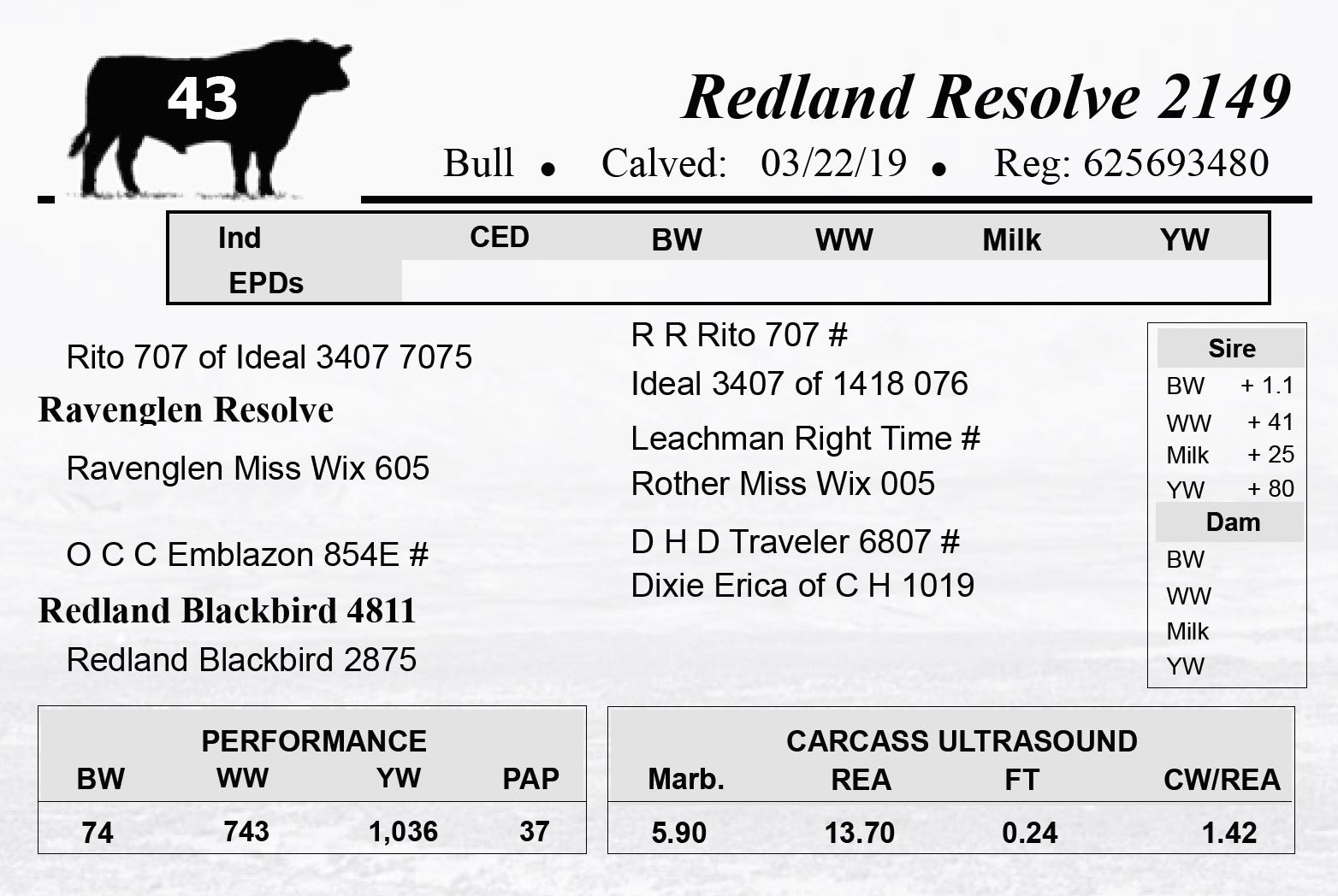 All bulls selling for $2,500 or more will be covered 50% by Redland Angus if they are injured during their first breeding season.
