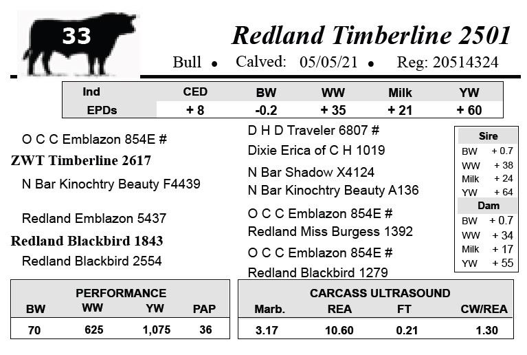 All bulls selling for $2,500 or more will be covered 50% by Redland Angus if they are injured during their first breeding season.