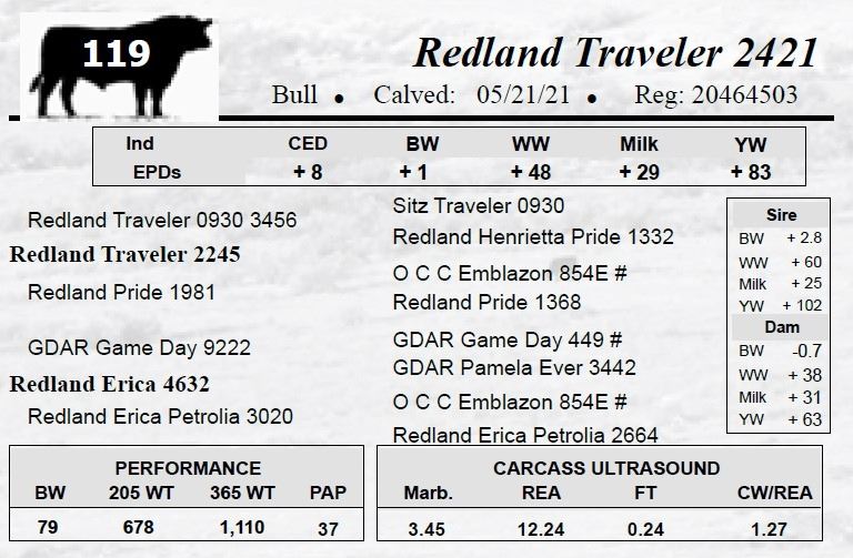 All bulls selling for $2,500 or more will be covered 50% by Redland Angus if they are injured during their first breeding season.