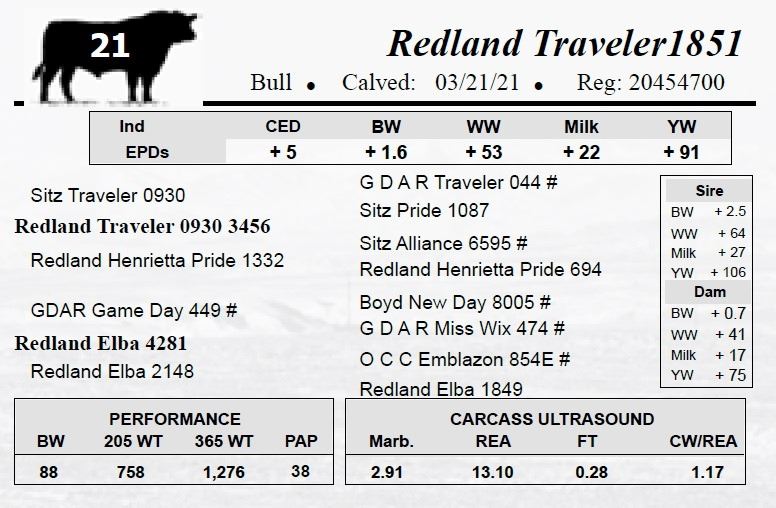 All bulls selling for $2,500 or more will be covered 50% by Redland Angus if they are injured during their first breeding season.