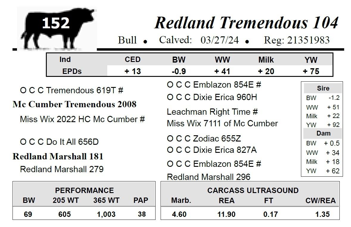 All bulls selling for $2,500 or more will be covered 50% by Redland Angus if they are injured during their first breeding season.