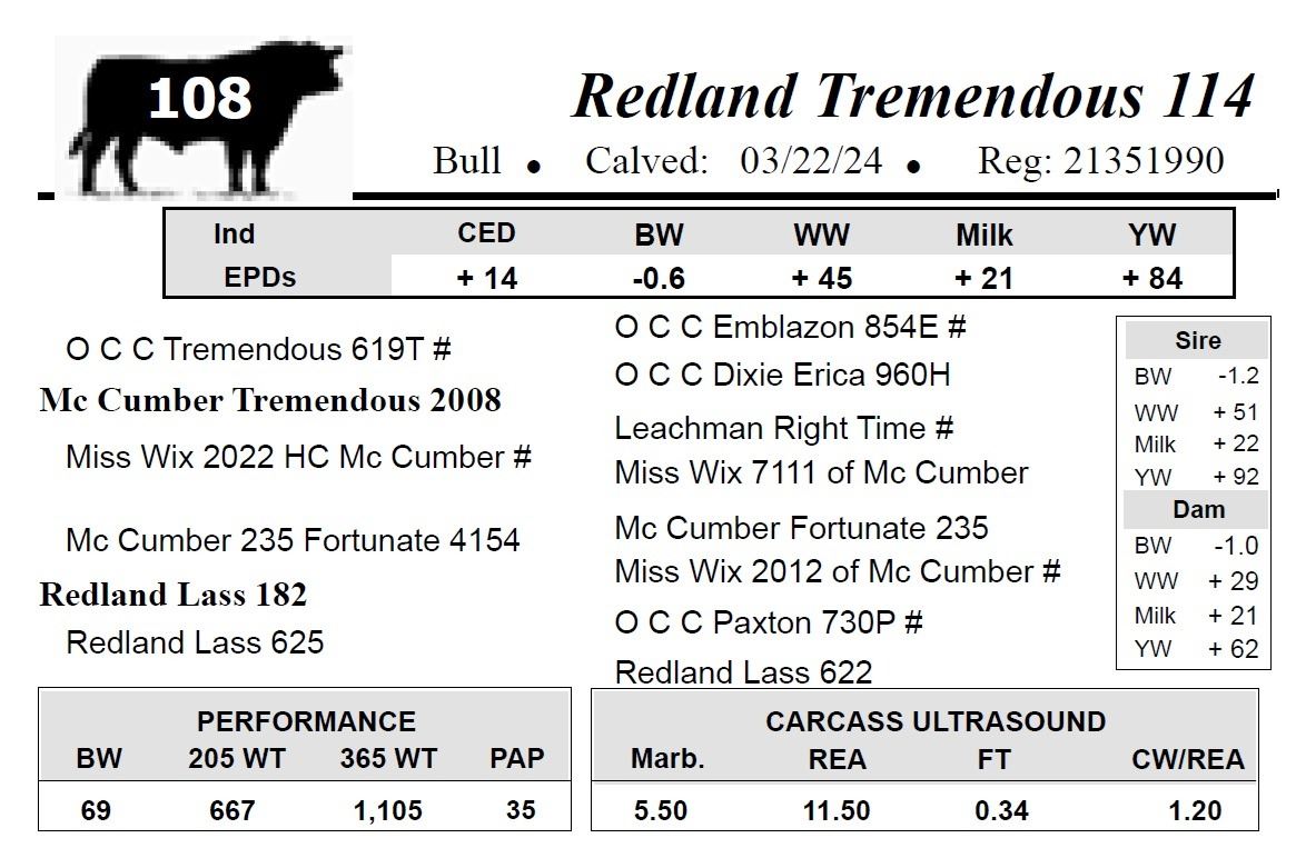 All bulls selling for $2,500 or more will be covered 50% by Redland Angus if they are injured during their first breeding season.