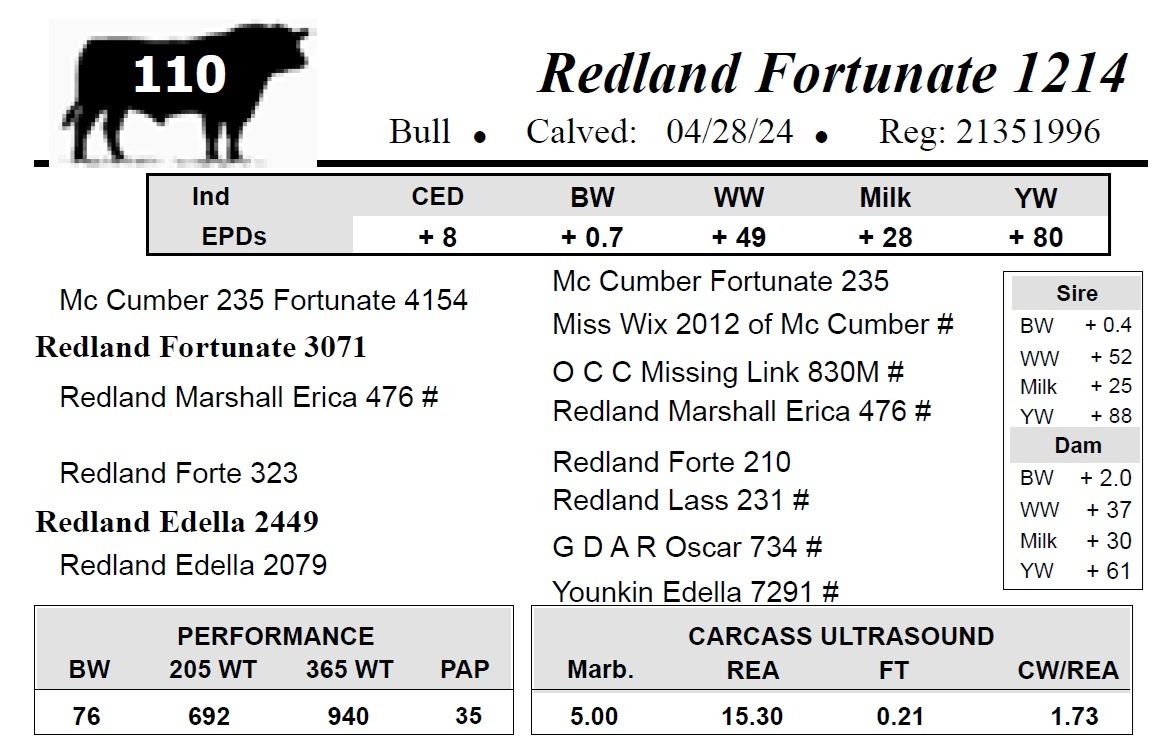 All bulls selling for $2,500 or more will be covered 50% by Redland Angus if they are injured during their first breeding season.