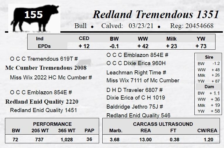 All bulls selling for $2,500 or more will be covered 50% by Redland Angus if they are injured during their first breeding season.