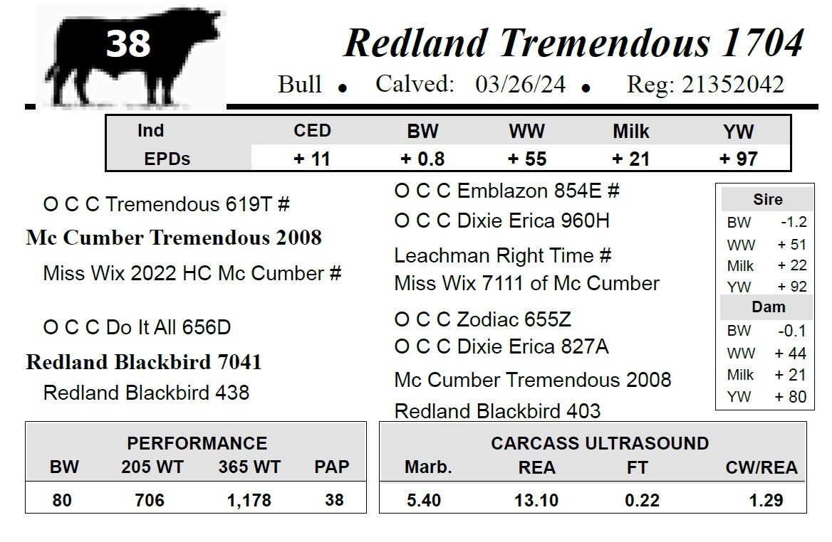 All bulls selling for $2,500 or more will be covered 50% by Redland Angus if they are injured during their first breeding season.