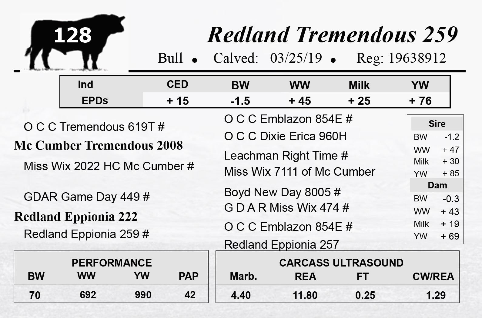 All bulls selling for $2,500 or more will be covered 50% by Redland Angus if they are injured during their first breeding season.