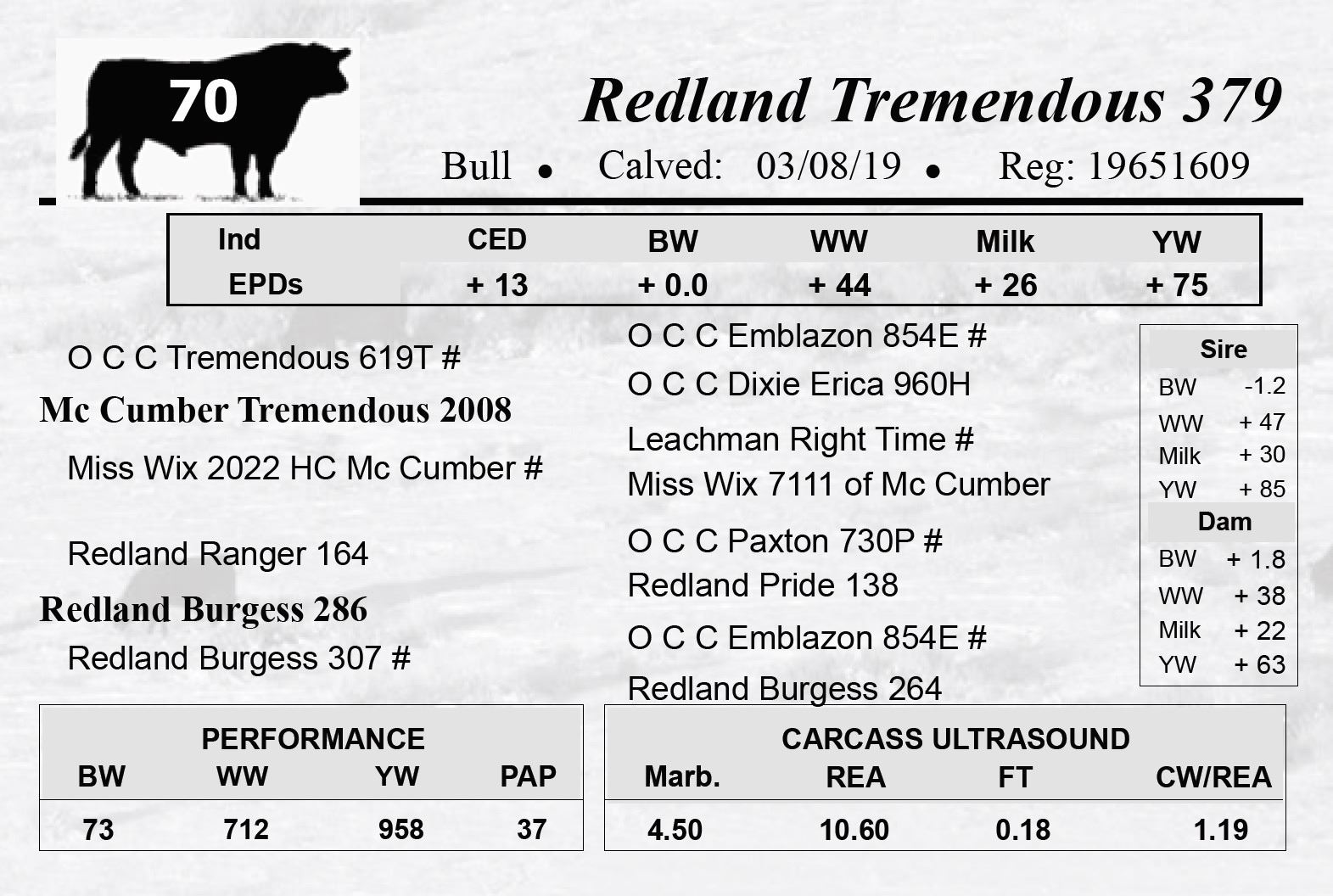 All bulls selling for $2,500 or more will be covered 50% by Redland Angus if they are injured during their first breeding season.