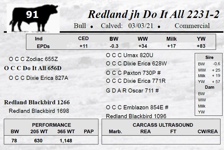 All bulls selling for $2,500 or more will be covered 50% by Redland Angus if they are injured during their first breeding season.