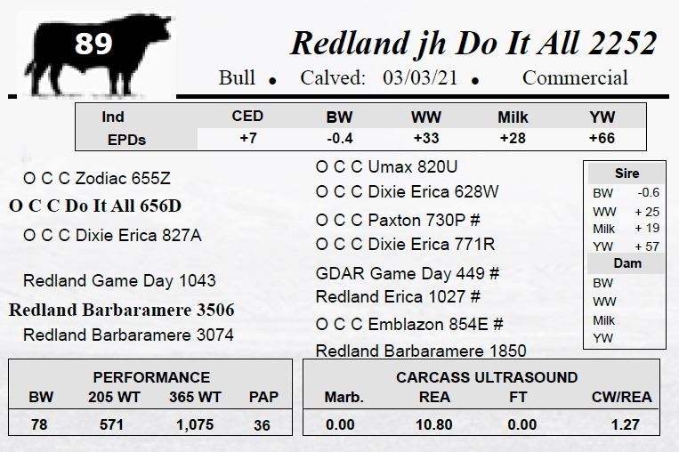 All bulls selling for $2,500 or more will be covered 50% by Redland Angus if they are injured during their first breeding season.