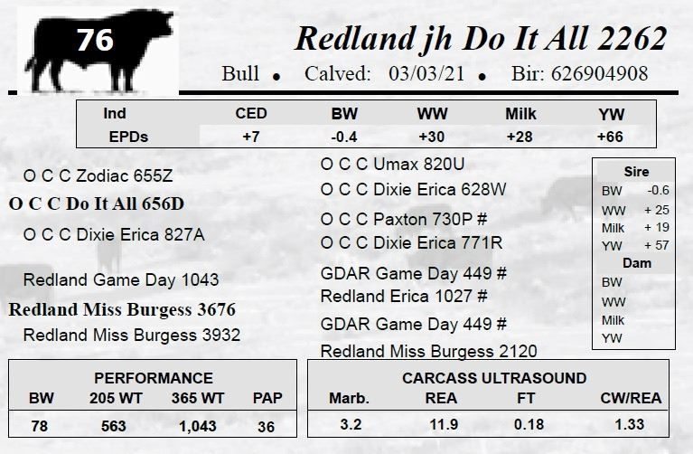 All bulls selling for $2,500 or more will be covered 50% by Redland Angus if they are injured during their first breeding season.
