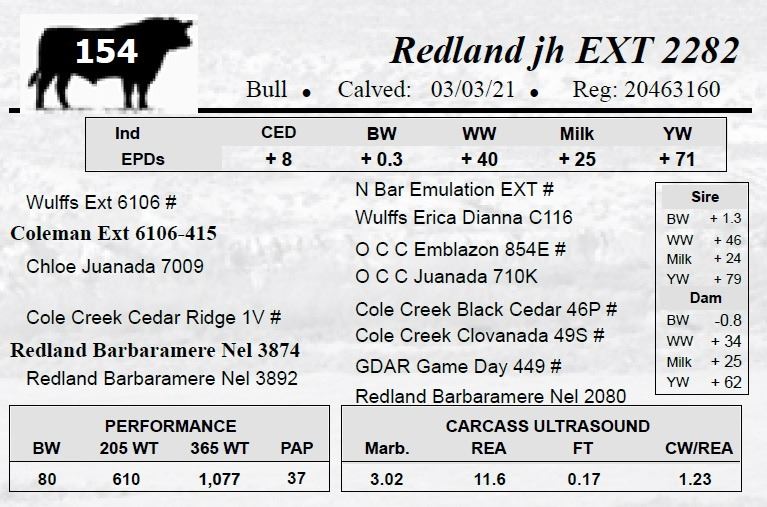 All bulls selling for $2,500 or more will be covered 50% by Redland Angus if they are injured during their first breeding season.