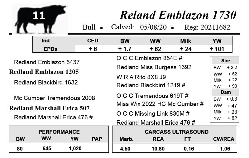All bulls selling for $2,500 or more will be covered 50% by Redland Angus if they are injured during their first breeding season.