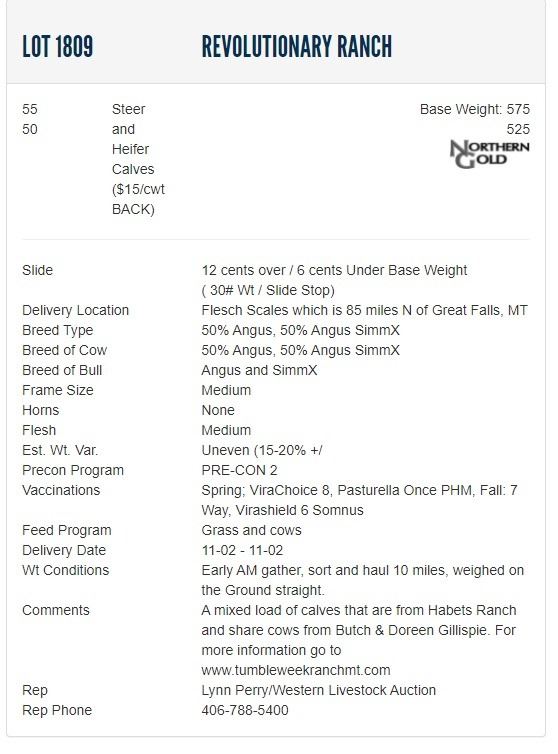 Comments A mixed load of calves that are from Habets Ranch and share cows from Butch & Doreen Gillispie. For more information go to www.tumbleweekranchmt.com