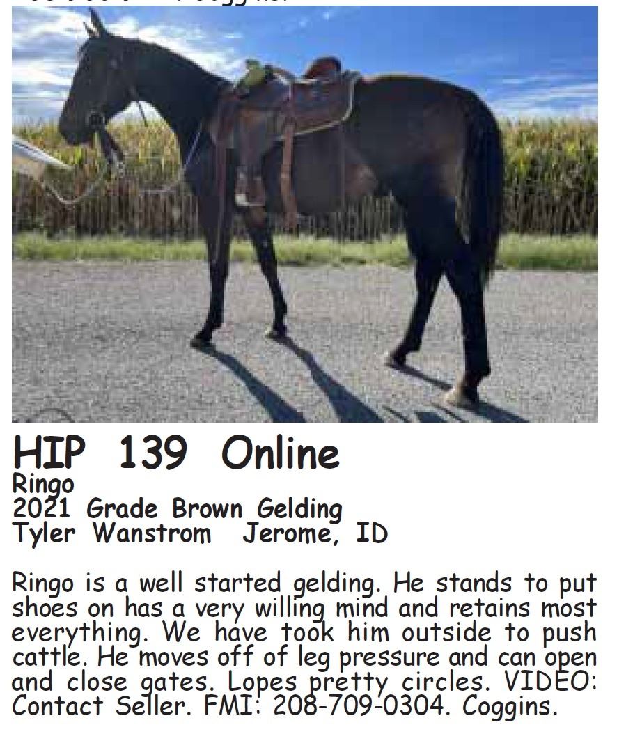 ALL OCTOBER 27-28 SALE HORSES WILL BE AUCTIONED LIVE AT BILLINGS LIVESTOCK – Internet bidding also available for Online/ ShowCase Internet Sale Session horses offered in this sale