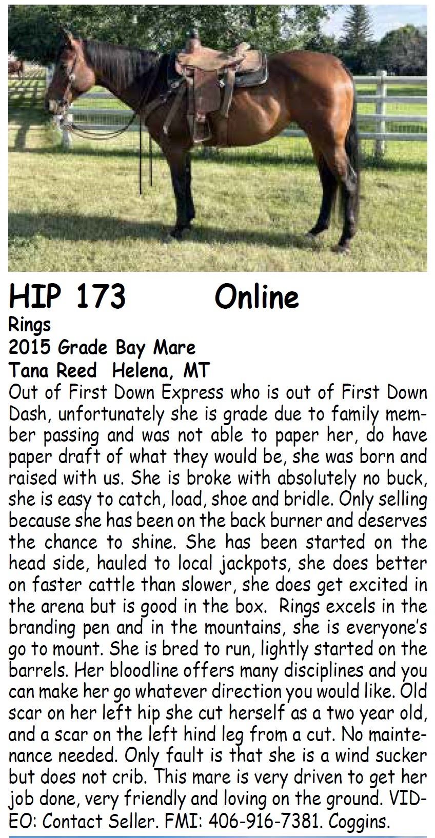 4. Horses are offered for sale according to the laws of the State of Montana, and the right to bid is reserved for all sellers in this sale.