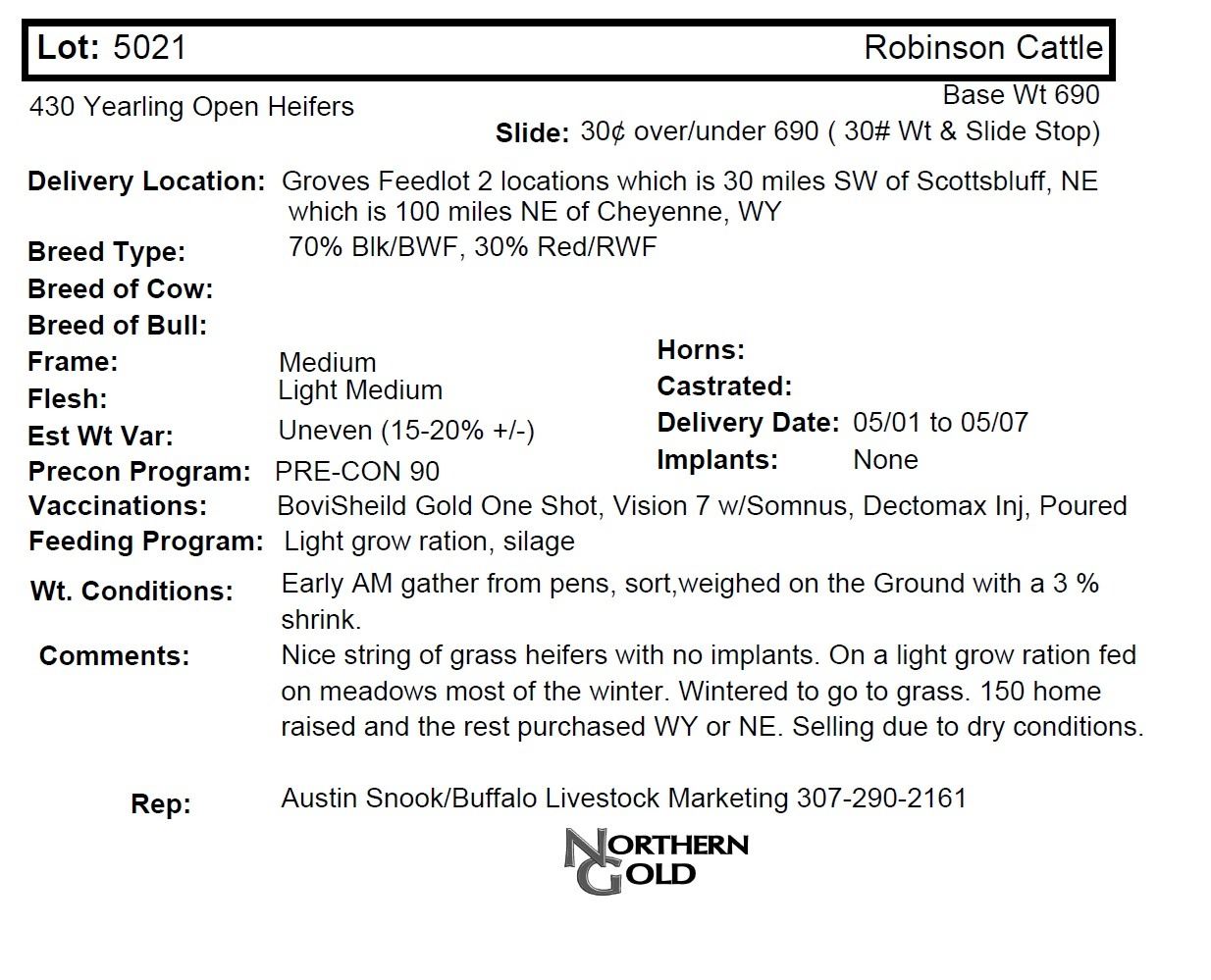 Rep: Austin Snook/Buffalo Livestock Marketing 307-290-2161