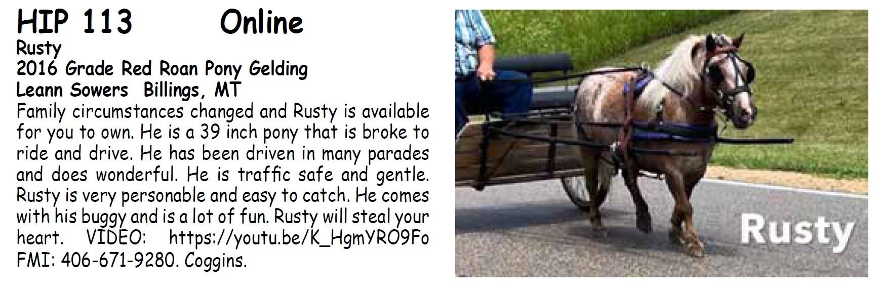 4. Horses are offered for sale according to the laws of the State of Montana, and the right to bid is reserved for all sellers in this sale.