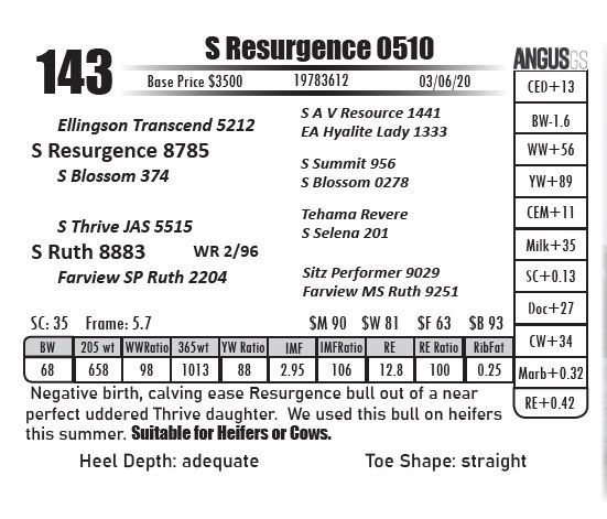 Sire Name: S Resurgence 8785