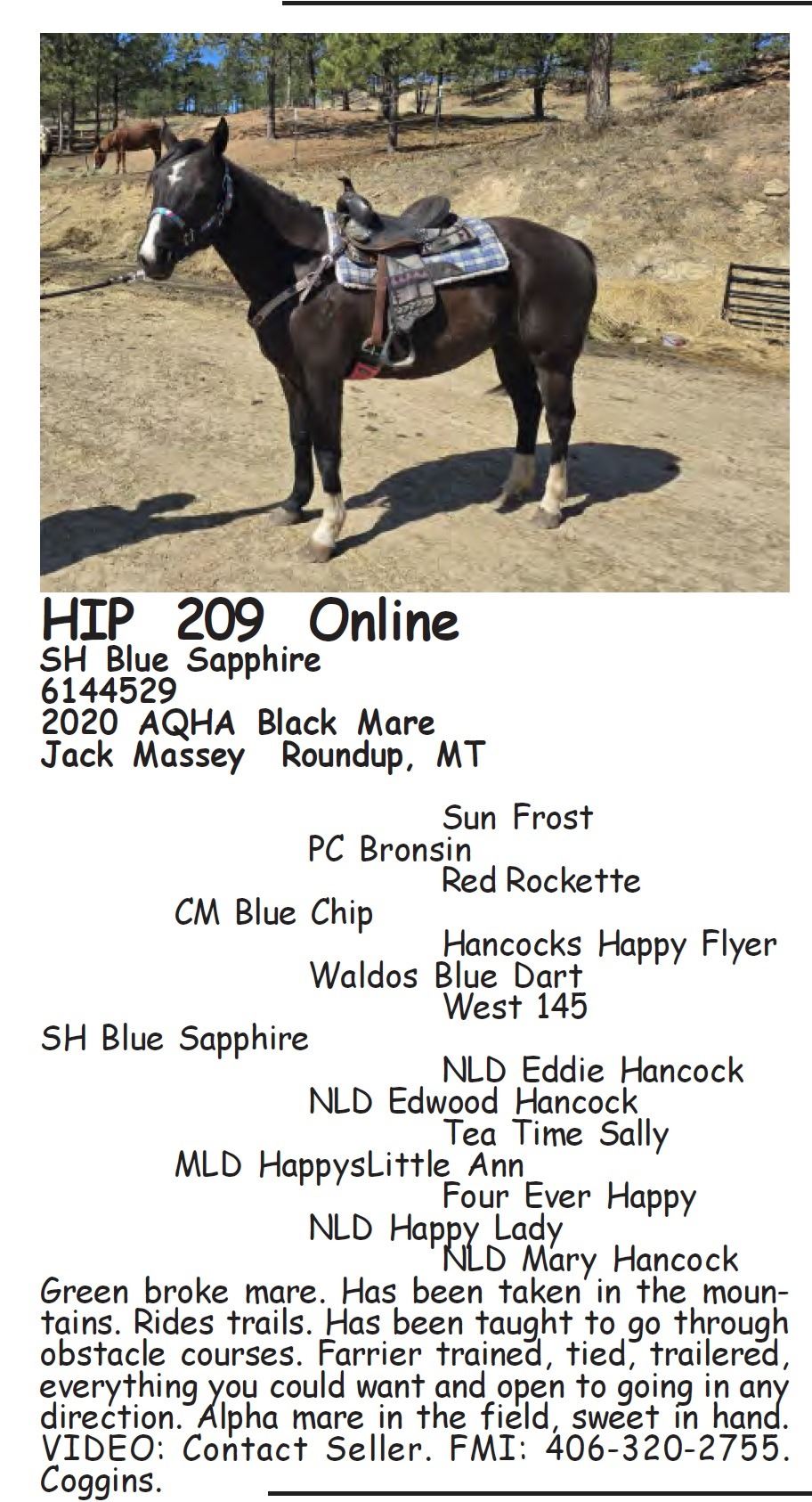 4. Horses are offered for sale according to the laws of the State of Montana, and the right to bid is reserved for all sellers in this sale.