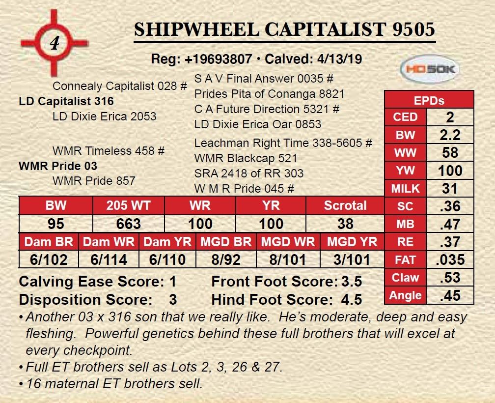 SHIPWHEEL CAPITALIST 9505