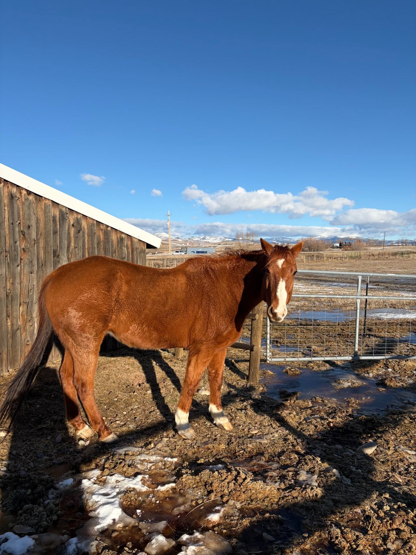2015 GRADE Sorrel Gelding. Gentle gentle, best describes Shooter, he stands at a stout 15/2 and will weigh close to 1250 with plenty of bone and size for any job. He’s very laid back and easy going he is a great trail or hunting horse very sure footed and 100% sound in every way, he is easy to catch easy to shoe crosses water not much bothers him has been packed leads very nice. He is great around other horses and always easy to catch! If you’re looking for your next ride, take a look at Shooter. Willing to hold for 10 days and meet within 100 miles. LOCATION: Afton, Wy. VIDEO: Coming Soon. FMI: 307-248-0095.